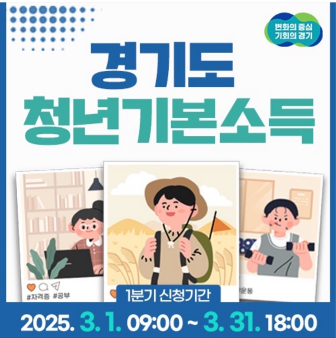 분기별 25만원씩 4회 총 100만원을 지급받을 수 있는 경기도 청년기본소득, 신청방법 보러 가볼까요?